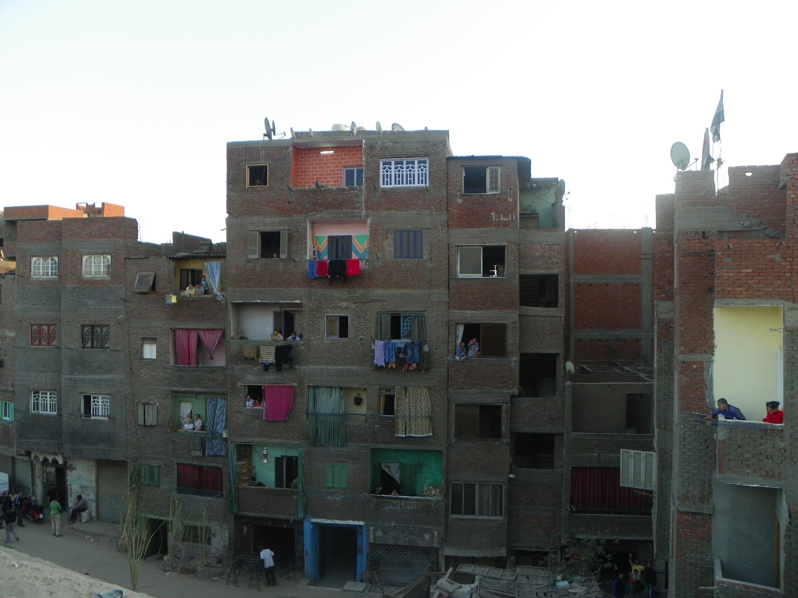 As we approached Cairo, the landscape changes to developments featuring large villas. This was where Cairo's 'elite' lived. There we many international schools and car dealers in between the neighborhoods. The closer we approached the city, the villas became large apartment blocks that became closer together and less lavish. Once in the city, the apartments appeared to be incomplete, no windows, outside walls not finished, concrete piers for additional floors protruded from roofs, but the roof was covered with satellite dishes. Tax laws, unfinished buildings are not taxed, so by not completing the buildings, no property taxes were owed. Strange system that produces a not too attractive city. Near the airport were more gated compounds of villas. This was the area where many former 'elite' of the government lived. With the new government on its way, many futures were in doubt.